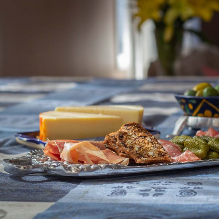 Elegant yet chic, this serving tray will make a clean and sophisticated addition to your table. Narrowly shaped in a rectangular form, styled with grapes along its outer edges along with two handles for easy transport. Perfect addition to serve biscuits, charcuterie, fruit, sweets and more…