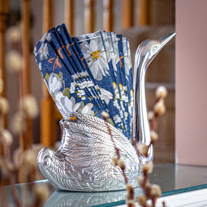 A beautiful silver swan is the perfect accessory to your shelf, office or table. napkins or stationary. It makes for a great gift or home décor.